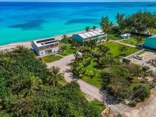 Description: Nestled off the highway, this charming two-story Bahamian cottage sits directly above one of the best beaches on Great Exuma. Start your mornings on the back patio with coffee watching the waves, then spend your day enjoying the white powder beach and swimming in the crystal blue water. The lower deck is perfect for a sunbathing siesta and wrap the day on the upper balcony enjoying cocktails before dinner. As you enter the home, you'll notice slate floors, an open-concept kitchen, dining, and living area with eclectic styling that feels instantly welcoming. The open concept gives ample space for the whole family to enjoy time together cooking, dining, and playing games while taking in the panoramic Exuma ocean view. Off the living area sits a half bath and garden-view bedroom, while upstairs boasts two oversized ensuite bedrooms with balconies to enjoy the unobstructed beach view. A major bonus feature of the house is its rooftop solar panels. With enough solar and battery backups, you don't have to fret the electricity bill or power outages.