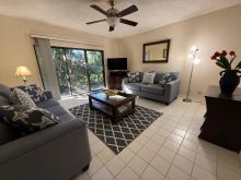 Description: This split level unit on Paradise Island has had recent renovations. 2 beds with 2 ensuite baths on the top level and nicely renovated kitchen fully equipped with Stainless Steel appliances, living and dining and 1/2 bath on the 1st floor. Balconies off of both bedrooms, living and dining room. Complex has pool and very private and secure.