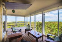 Description: Welcome to your paradise! This stunning hilltop home on Great Guana Cay offers panoramic views of the Atlantic Ocean, Sea of Abaco, and Scotland Cay lagoon. With 3 bedrooms, 2.5 baths, and an outdoor shower on a half-acre lot, it's the epitome of island living. Wake up to ocean breezes and sunrise vistas, relax on screened porches, and enjoy the tranquil gardens. Equipped with a standby generator and electric chair lift, this home ensures comfort and convenience. Don't miss out on this secluded island gem - schedule a viewing today!